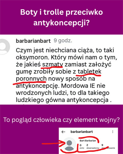 Gdy widzisz takie komentarze, może Ci się wydawać, że wokół Ciebie jest mnóstwo ludzi, którzy są wrogami antykoncepcji i dobrego seksu, ale… np. na portalu X prawie 30% treści produkują nie ludzie, ale boty.
